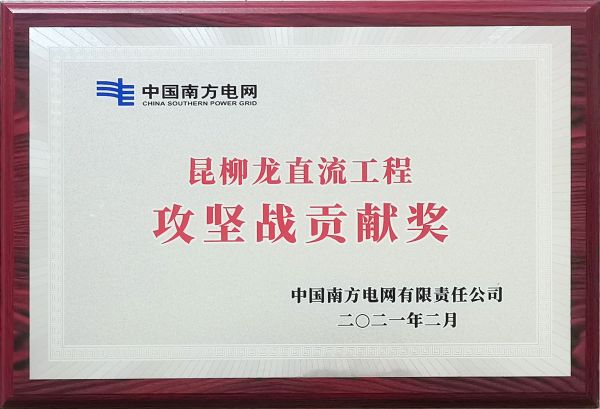 China Southern Power Grid-Kunming-Liuzhou-Longmen DC Project-Battle Contribution Award - Honorary certificate