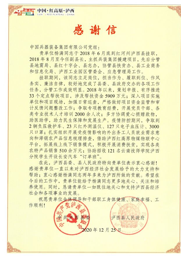 Letter of Commendation for Poverty Alleviation